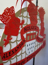 > Das Logo wurde ebenfalls aus Stahl hergestellt und dann pulverbeschichtet.